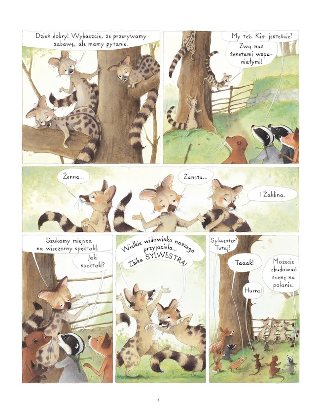 Na łamach komiksu odnajdziemy ludzkie charaktery w zwierzęcych maskach, zabawne perypetie i próby zmierzenia się z innością, która zamiast dzielić - łączy naszych sympatycznych bohaterów. To pozytywne i ciepłe przesłanie towarzyszy nam na każdym kroku lektury i sprawia, że staje się ona bardzo dobrą propozycją dla dzieci.